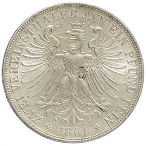 Monete e Medaglie Estere. Germania-Francoforte. Citta' libera. Doppio tallero 1861. KM365. AG. SPL/FDC.
