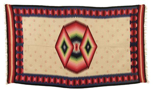 Germantown Rio Grande Blanket. 46" x 82". Saltillo style designs, circa 1900. Pristine condition. (est $2,000-3,000)