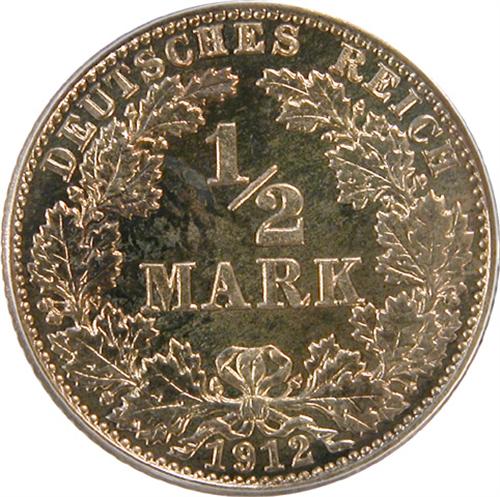1/2 Mark 1912J PCGS PR-65 Cameo. A fully struck and superbly lustrous piece with virtually flawless pale golden toned surfaces