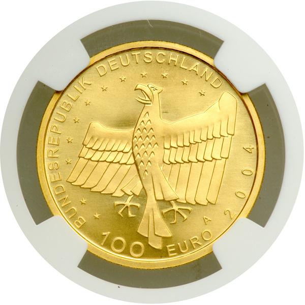 Germany. 100 Euro, 2004-A. KM-235. Weight 0.4999 ounce. Bamberg city view. NGC graded Proof 69.