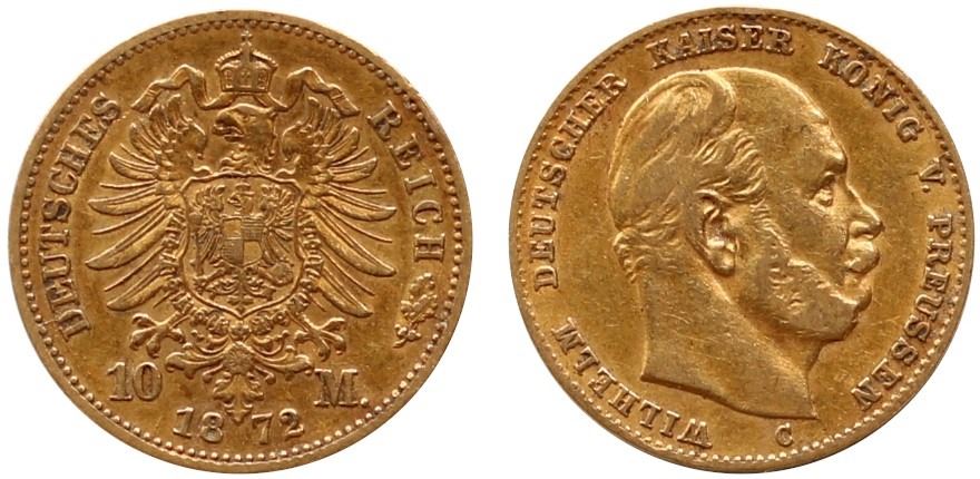 Germany; 1872 10 Marks "Wilhelm" @KM1232 VF or better.