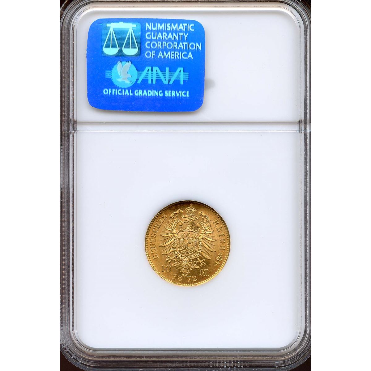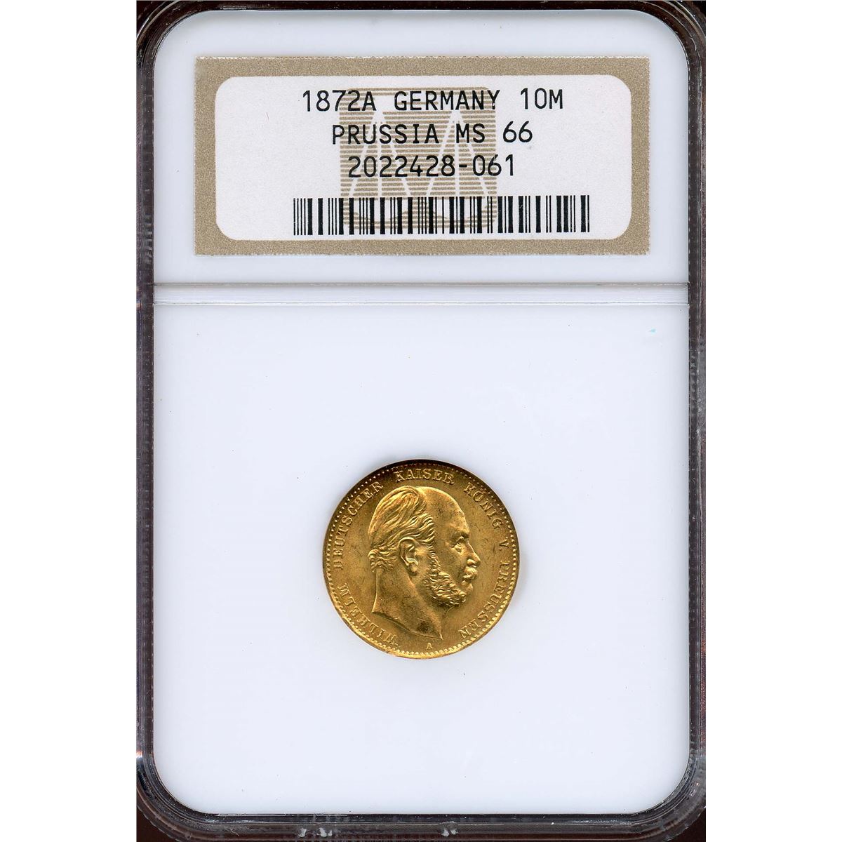Germany 1872 A, Gold 10 Marks, Prussia, KM 502, 0.1152oz AGW, Gem coin with flashy luster, NGC certified MS-66