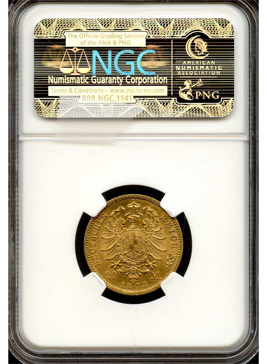 Germany 1873 C, Gold 20 Marks, Cleve mint, KM 501, Prussia, A gem coin with great luster, NGC certified MS-64