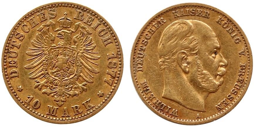 Germany; 1877 10 Marks "Wilhelm" @KM504 VF or better.