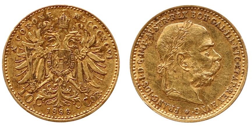 Germany; 1896 10 Corona "Francois Joseph" @KM2805 VF or better.