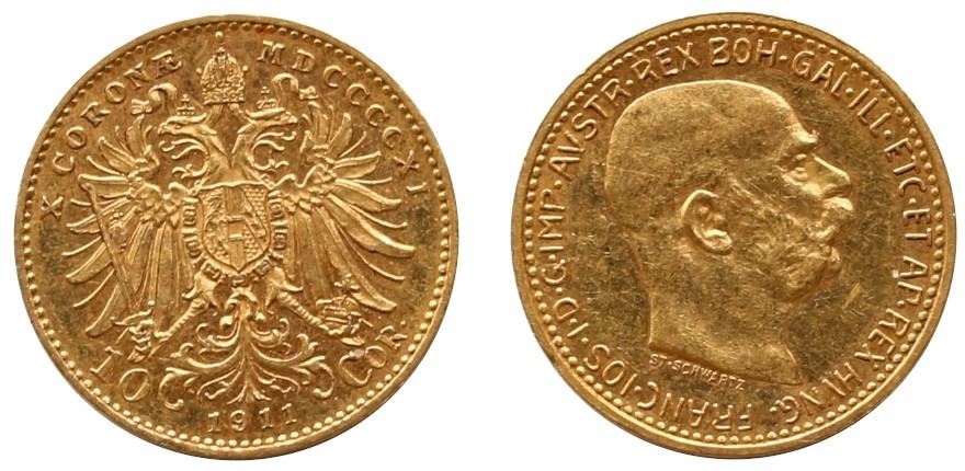 Germany; 1911 10 Corona "Francois Joseph" @KM521 VF or better.