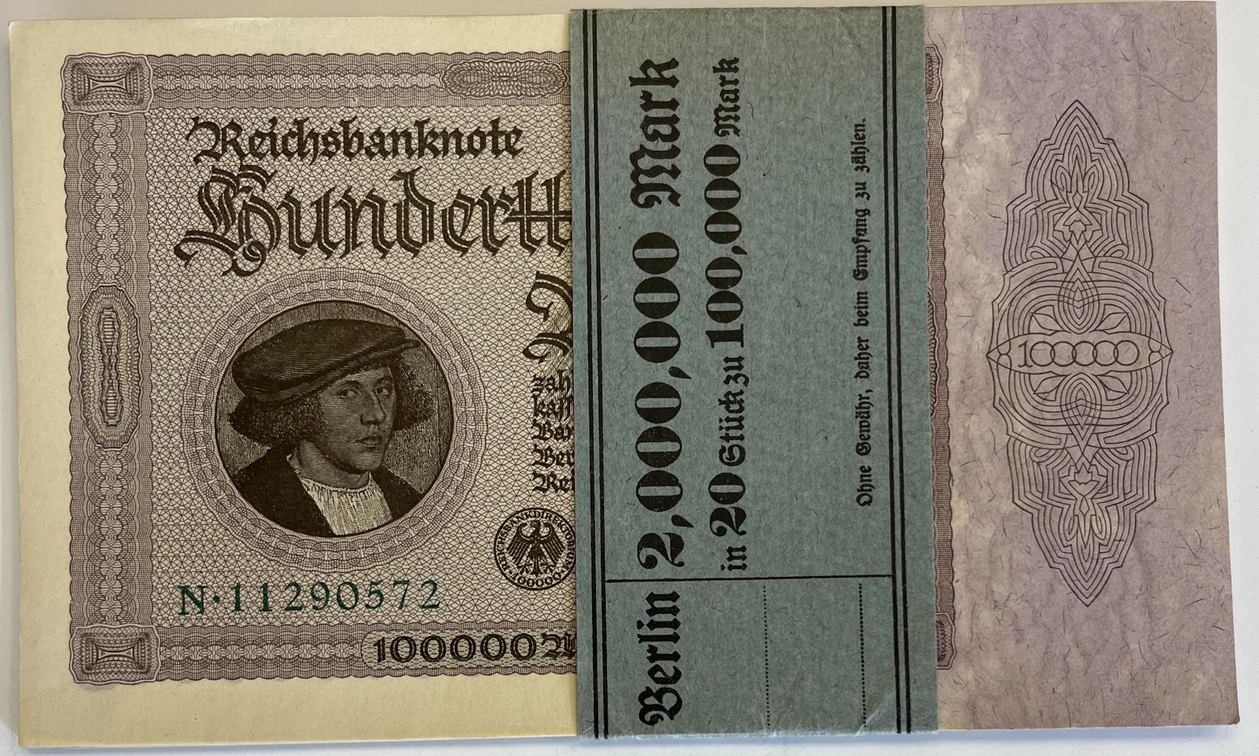 Germany; 1923 100,000 Mark - Original Bundle of 20 notes. All crisp original Uncirculated. Catalogue value $500+