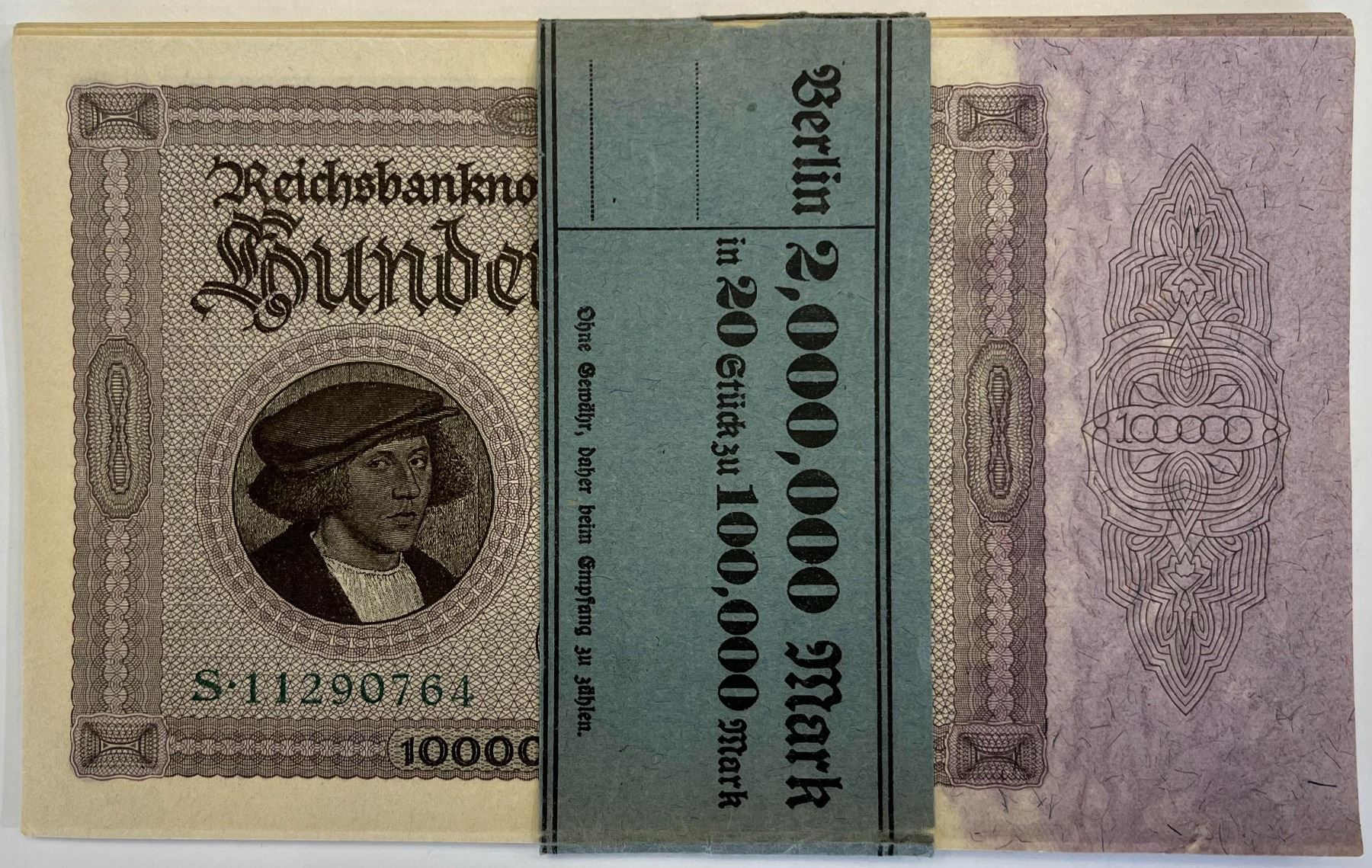 Germany; 1923 100,000 Mark - Original Bundle of 20 notes. All crisp original Uncirculated. Catalogue value $500+