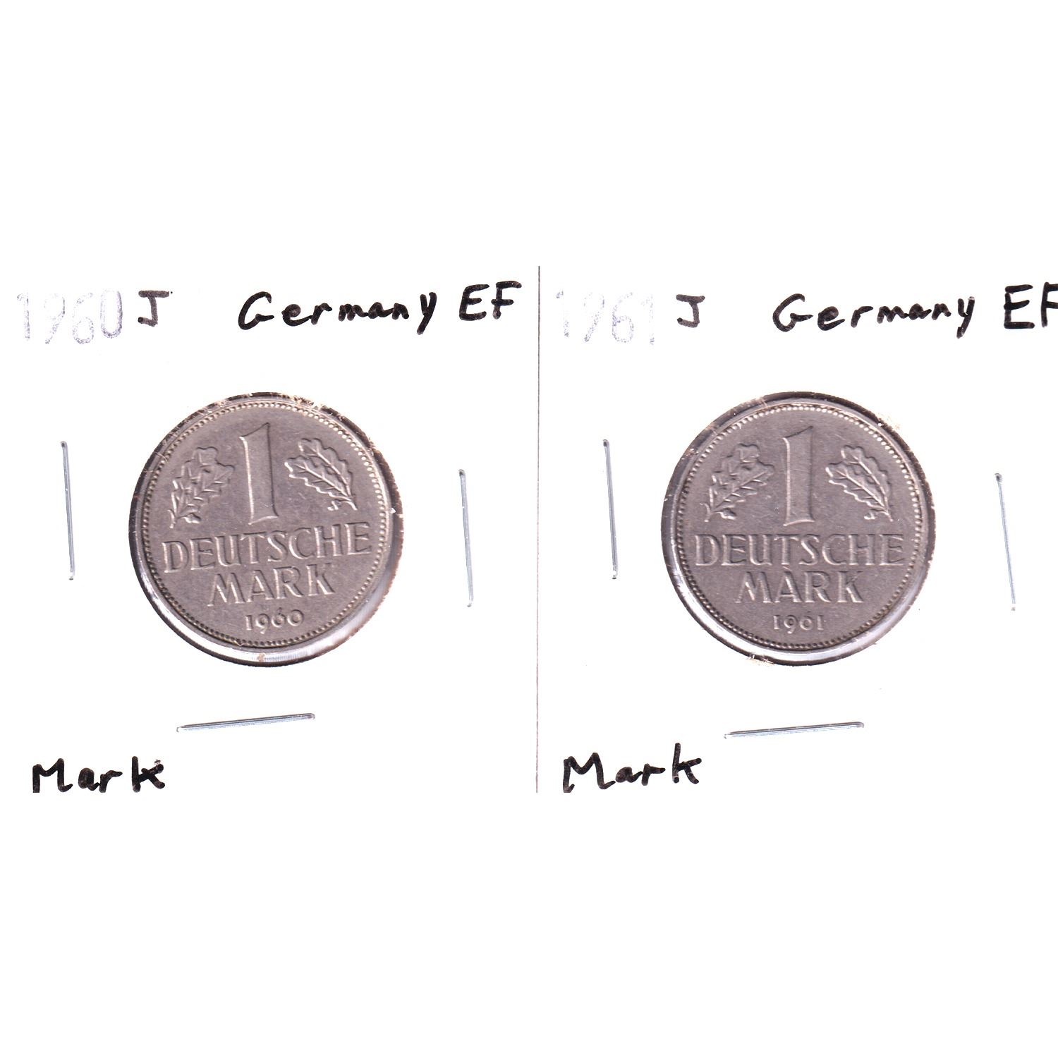 Germany 1960J & 1961J 1 Mark Coins EF. 2pcs