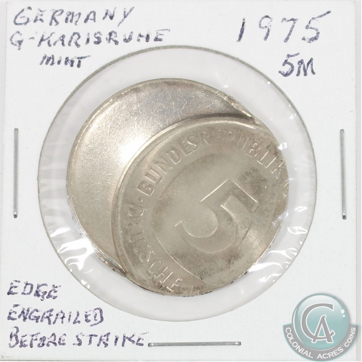 Germany 1975G 5 Mark with spectacular off strike error