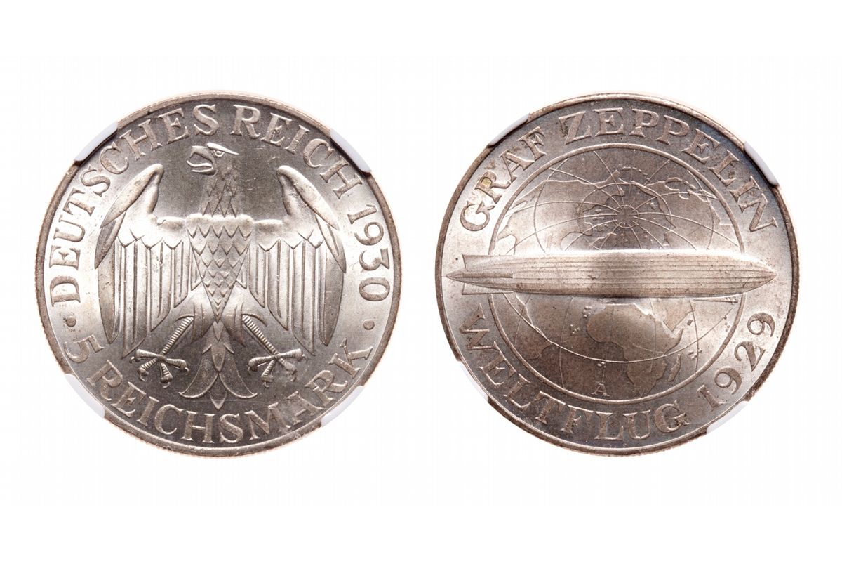 Germany. 5 Marks. 1930 A. NGC graded Gem Uncirculated-65. Zeppelin.