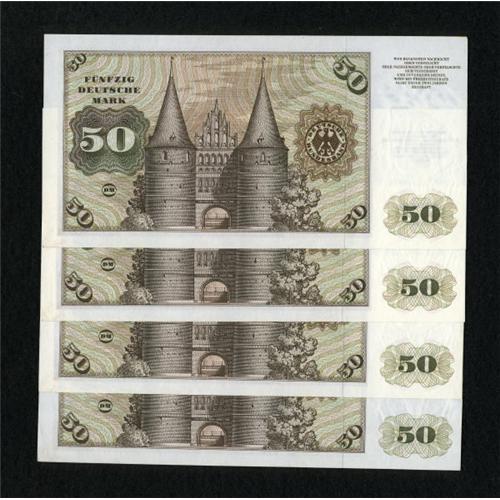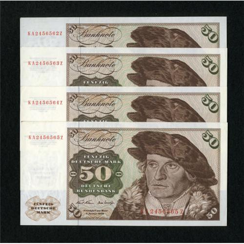 Germany 50 Marks 1970 Pick 33a Four Consecutive