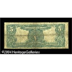 Germany-Bavaria, Fr. 280 $5 1899 Silver Certificate Star Note Very Good. <B>Fr. 280 $5 1899 Silver Certificate Star Note Very Good.</B></I> Serial number *1286821B, the only seven-digit star radar serial number in the Merlau collection and the only known radar example on any Indian Chief note. It's a well circulated, but intact example with a tiny nick at the top margin, but no real defects other than plenty of honest circulation.<BR><I>From the collection of Richard Merlau.</B></I> <BR><BR><B>Important notice:</B> Heritage usually auctions material at the rate of 200-250 lots per hour. On some occasions eBay Live bid software or the Internet may not be able to keep up with the pace of the auction. We recommend placing a realistic absentee bid now as insurance to avoid disappointment. Occasionally the auctioneer may eliminate or reject an eBay Live bid, and the auctioneer may also reopen a lot after the close of the eBay live bidding (usually because we missed an audience bid), and may reject your bid even if it shows you as the winning bidder. By bidding via eBay Live, you agree that Heritage may award the lot to another bidder at its sole discretion under the circumstances described above or any other reasonable circumstances. Since eBay bids are not shown to us until we open the lot on the floor, we treat those bids just like floor bids. In most cases the floor responds before the eBay bid is presented to us, due to Internet lag time, so for consistency we have made it a policy that floor bids are always considered first over tie eBay live bids. Also please note that all Heritage lots purchased through eBay Live carry a 20% Buyer's Premium. Please make sure you read the Terms and Conditions before you bid. This lot is being auctioned in conjunction with a live floor auction by Heritage Galleries & Auctioneers. All final auction and invoice information will be supplied by Heritage Galleries & Auctioneers, and all other information should be considered preliminary. Lot:17475