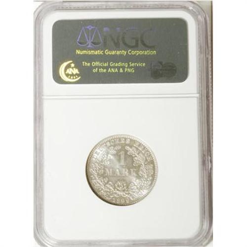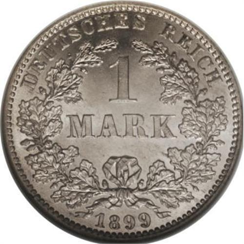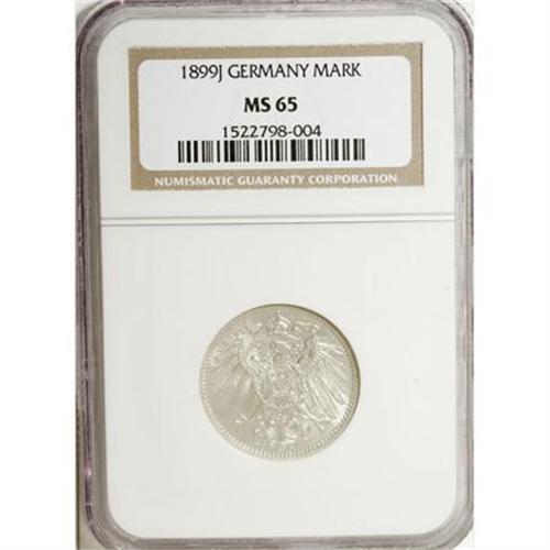 <B>Empire. 1 Mark 1899-J,</B></I> KM-14, MS65 NGC, brilliant silvery white luster, Gem Uncirculated.<BR><BR><b>Shipping:</b> Coins & Currency (<a target="_blank" href="http://www.heritageauctions.com/common/shipping.php">view shipping information</a>)