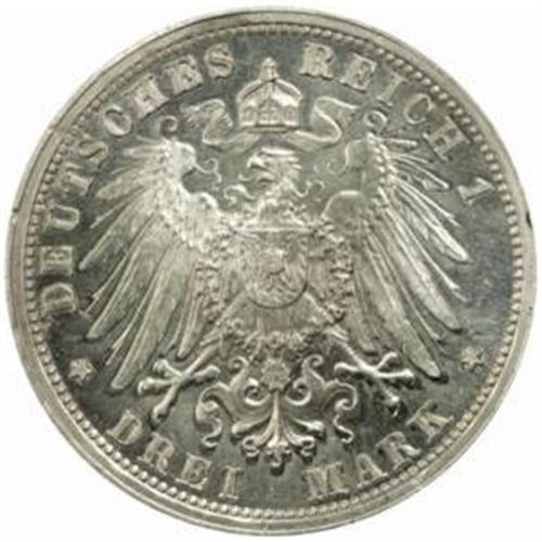 Germany. Empire (1871-1918). Reverse Pattern 3 Marks Struck in Aluminum. ND (c. 1908).