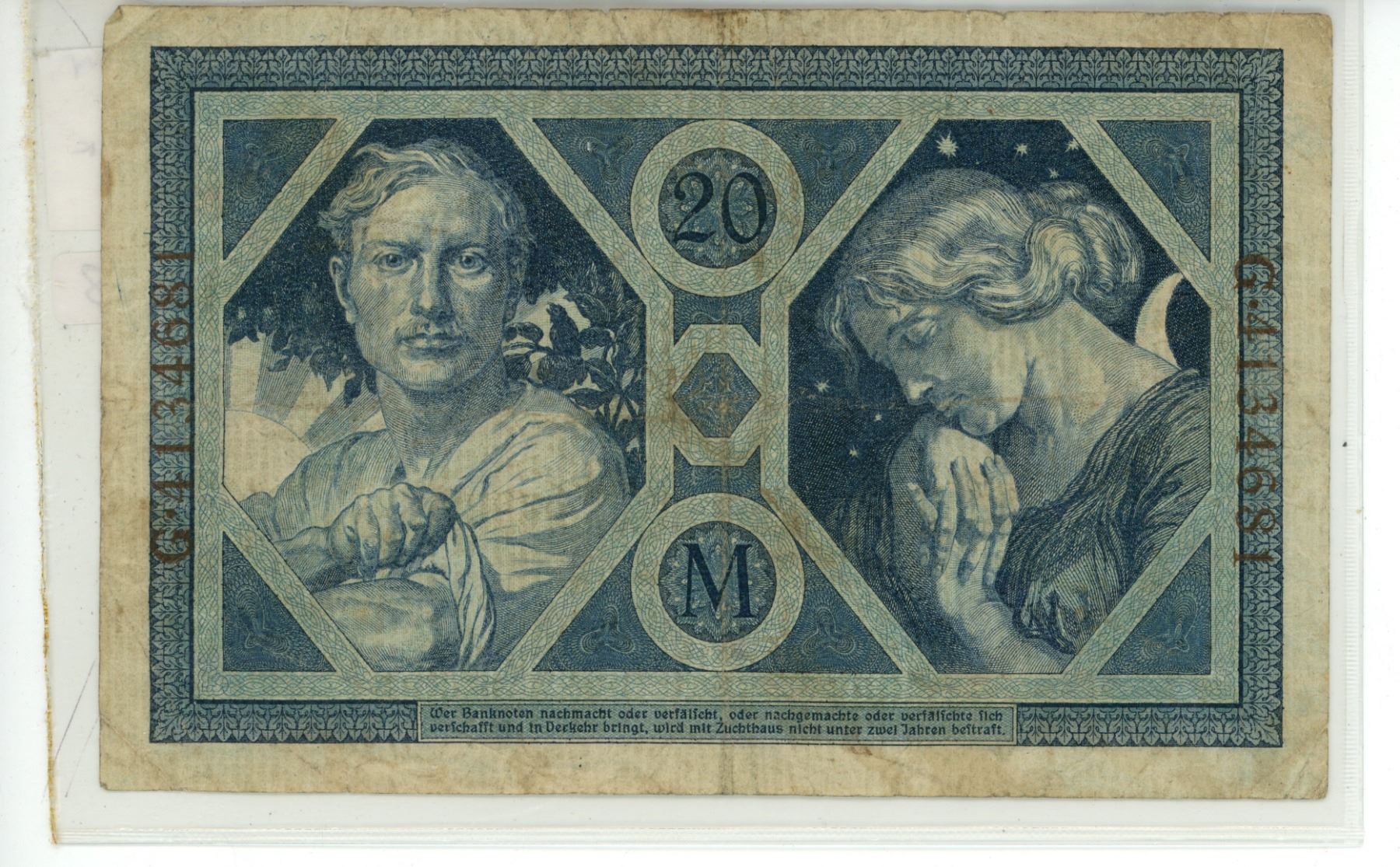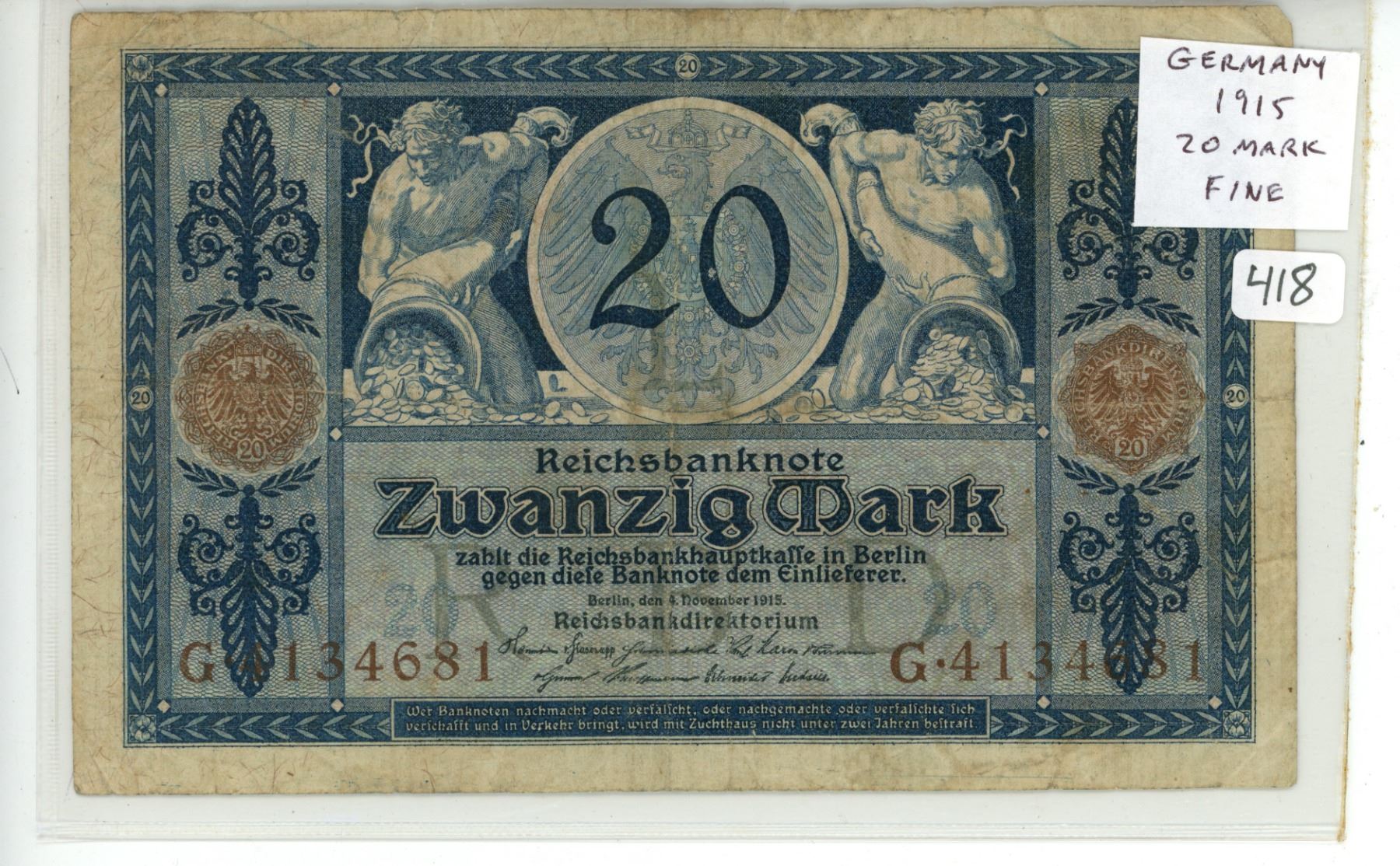 Germany – Empire. 1915 20 Mark. Issued during World War I. Fine.