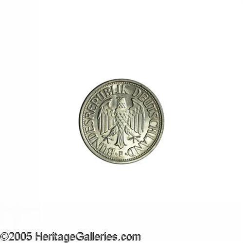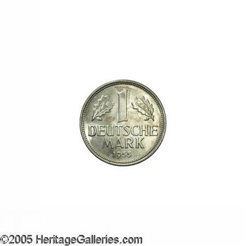 <B>Federal Republic. 1 Mark 1955F,</B></I> KM110, lustrous UNC with a few light spots of toning on the reverse. Very scarce in this condition.