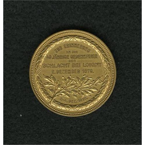 <B>1870-1910 Hamburg, Germany, Bronze Commemorative.</B></I> Bronze, 42.5 mm. German medallion issued to commemorate the 40th anniversary of the 1870 battle at Loigny. In the Dec. 2, 1870, Battle of Loigny-Poupry during the Franco-Prussian War, an army detachment under the command of Friedrich Franz II, Grand Duke of Mecklenburg-Schwerin, defeated the French Army of the Loire. The celebrations in Germany were held December 2-4, 1910. With the original case of issue.<BR><BR><b>Shipping:</b> Coins & Currency (<a target="_blank" href="http://www.heritageauctions.com/common/shipping.php">view shipping information</a>)