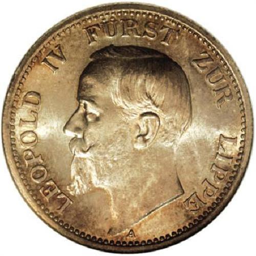 Germany Lippe-Detmold. Leopold IV 2 Mark 1906A,