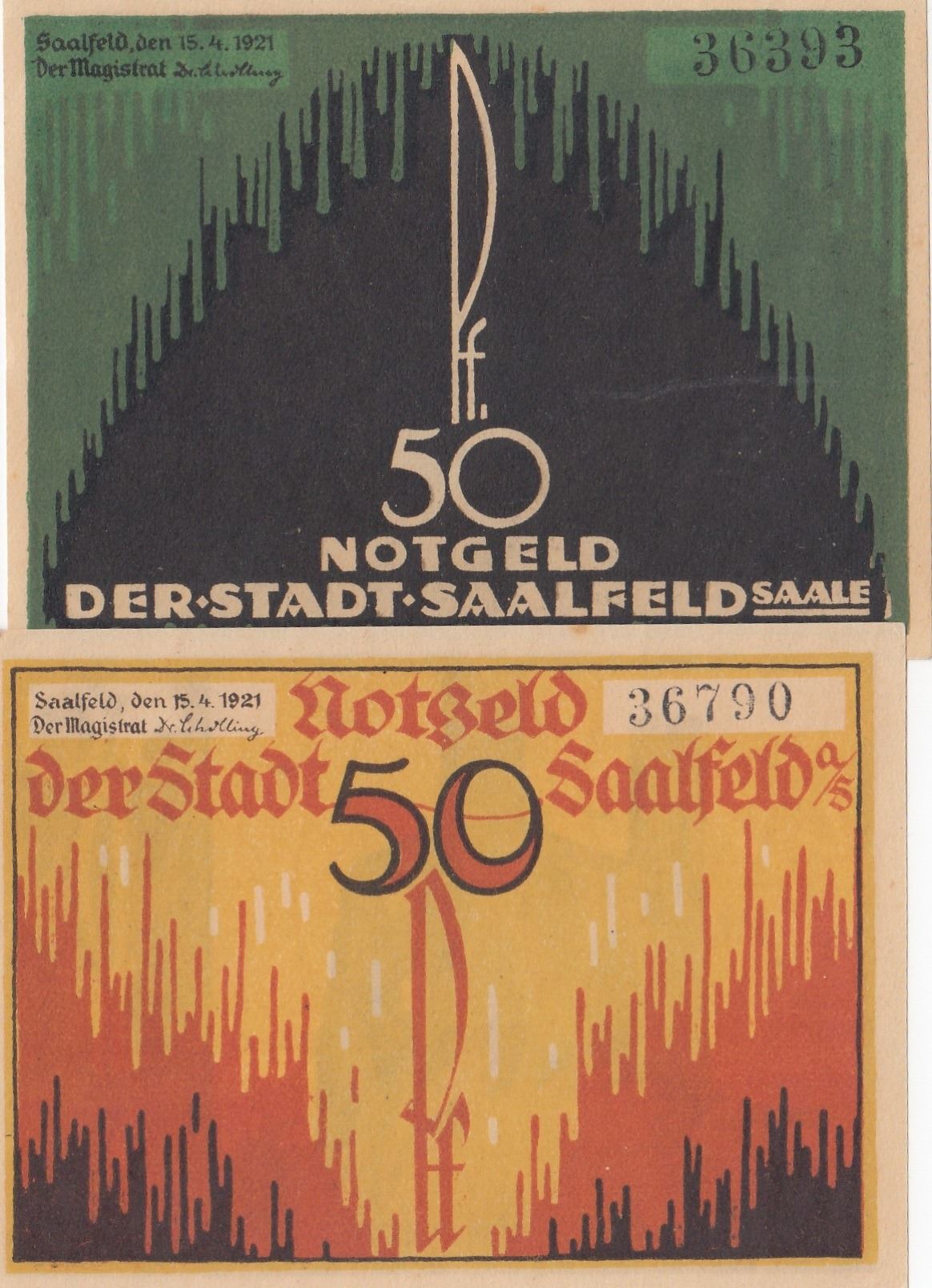Germany, Notgeld, 50 Pfennig (2), 1921, UNC, (Total 2 banknotes)br/Saalfeld