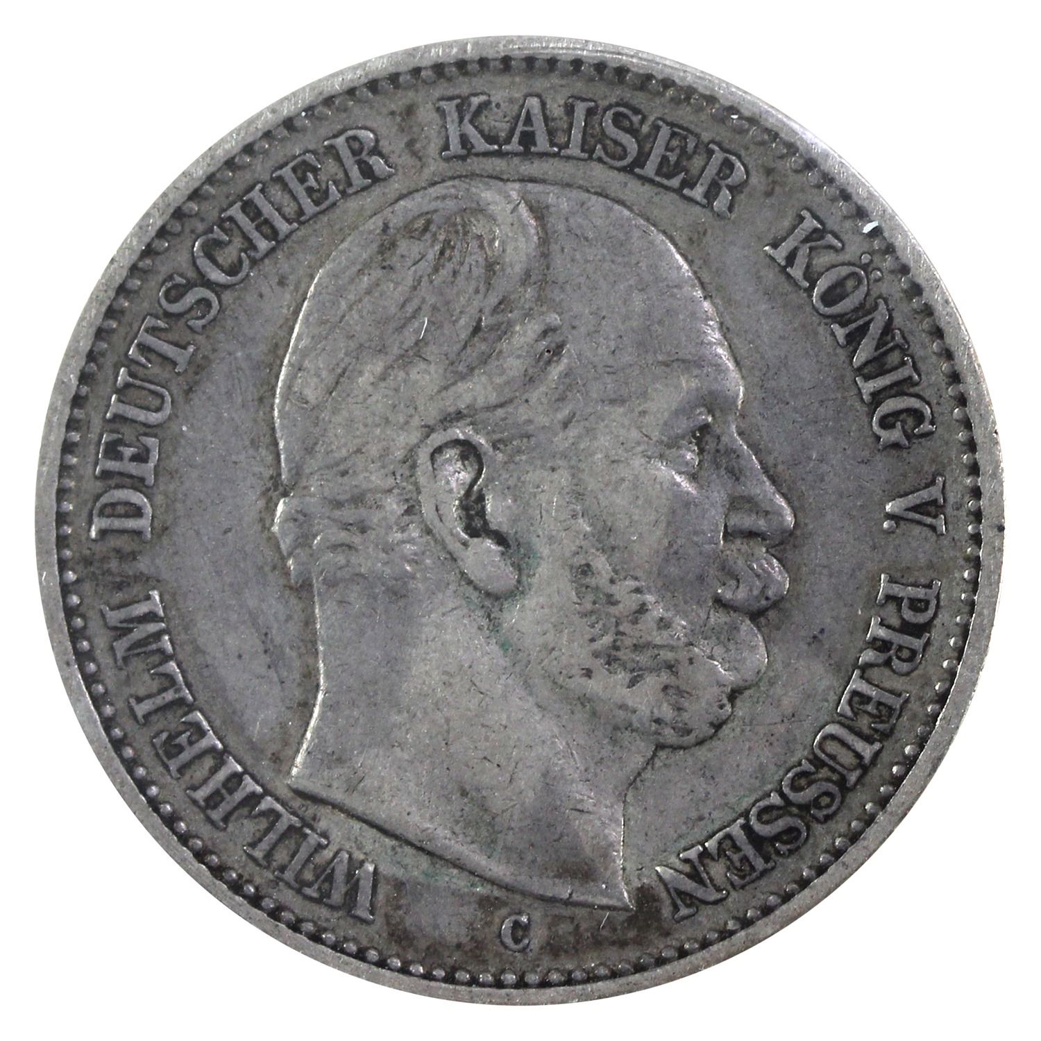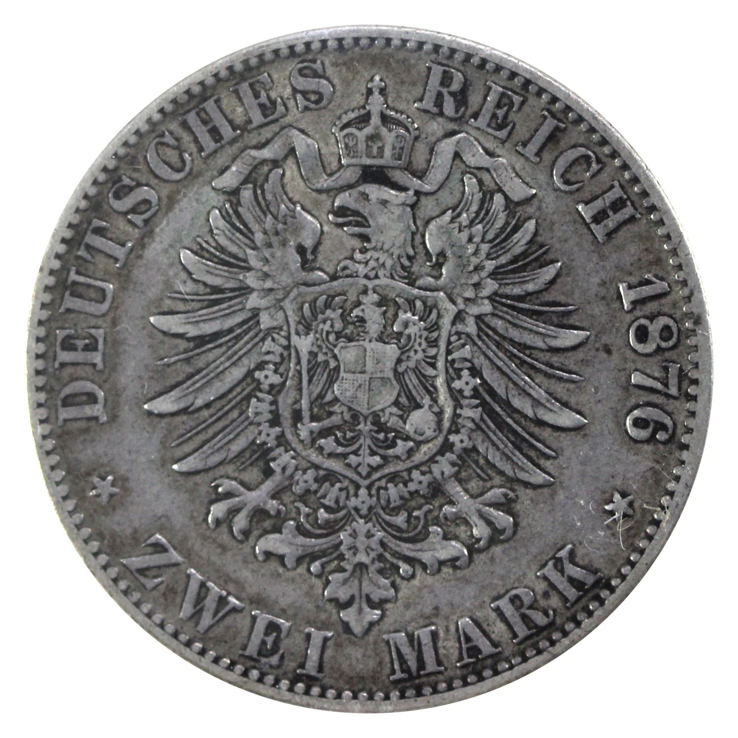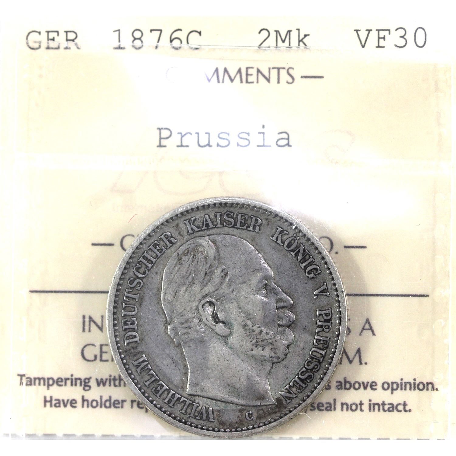 German States-Prussia 1876C Silver 2 Marks ICCS VF30. Coin is .900 Fine and Contains Appx. 0.3215ozt Pure