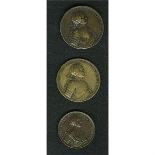 <B>Germany Prussia Medals Group Lot.</B></I> Includes: <B>two</B></I> <B>1757 Germany Prussia Siege of Prague, Olding 604a,</B></I> bronze-gilt, 48-mm medals depicting Victory kicking the crown off of Bohemia; and a <B>1758 Germany Prussia Frederick the Great </B></I>41-mm medal.<BR><BR><b>Shipping:</b> Coins & Currency (<a target="_blank" href="http://www.heritageauctions.com/common/shipping.php">view shipping information</a>)