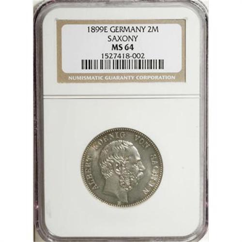 <B>Saxony. Albert 2 Mark 1899E,</B></I> KM1245, MS64 NGC. Brilliant and well struck with a few tiny contact marks.<BR><BR><b>Shipping:</b> Coins & Currency (<a target="_blank" href="http://www.heritageauctions.com/common/shipping.php">view shipping information</a>)