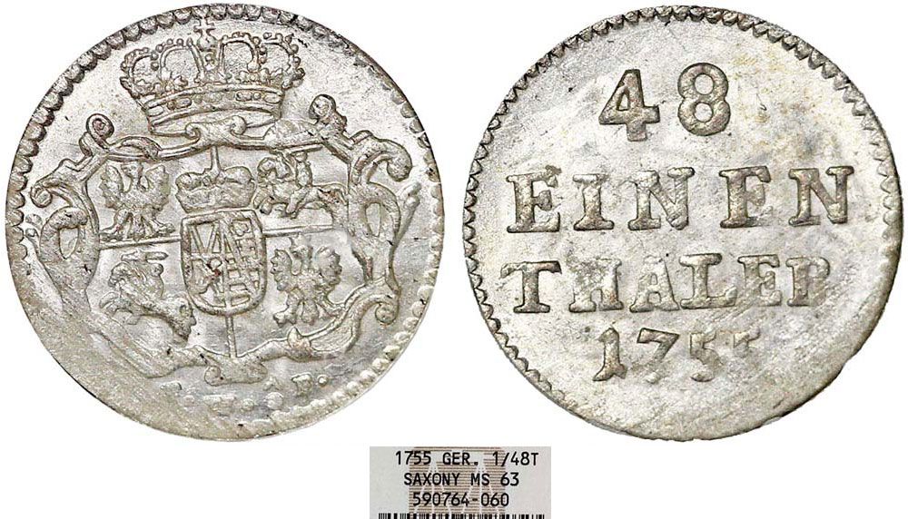 Obv: Crowned Coat of Arms of Commonwealth of Poland and Saxony.