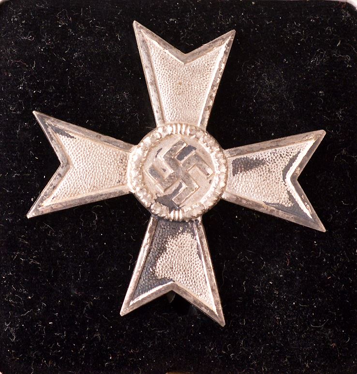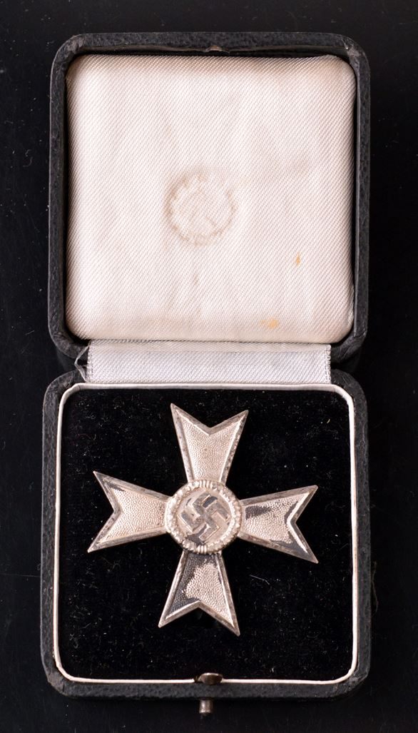 Germany, World War Two, War Merit Badge, 1st Class, without swords, pin back, VF. With original case. Case is only Good.