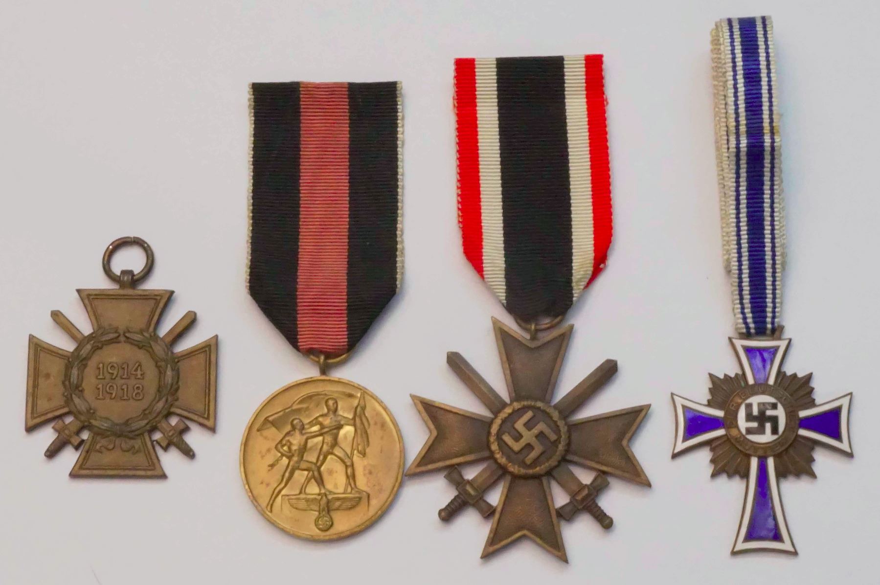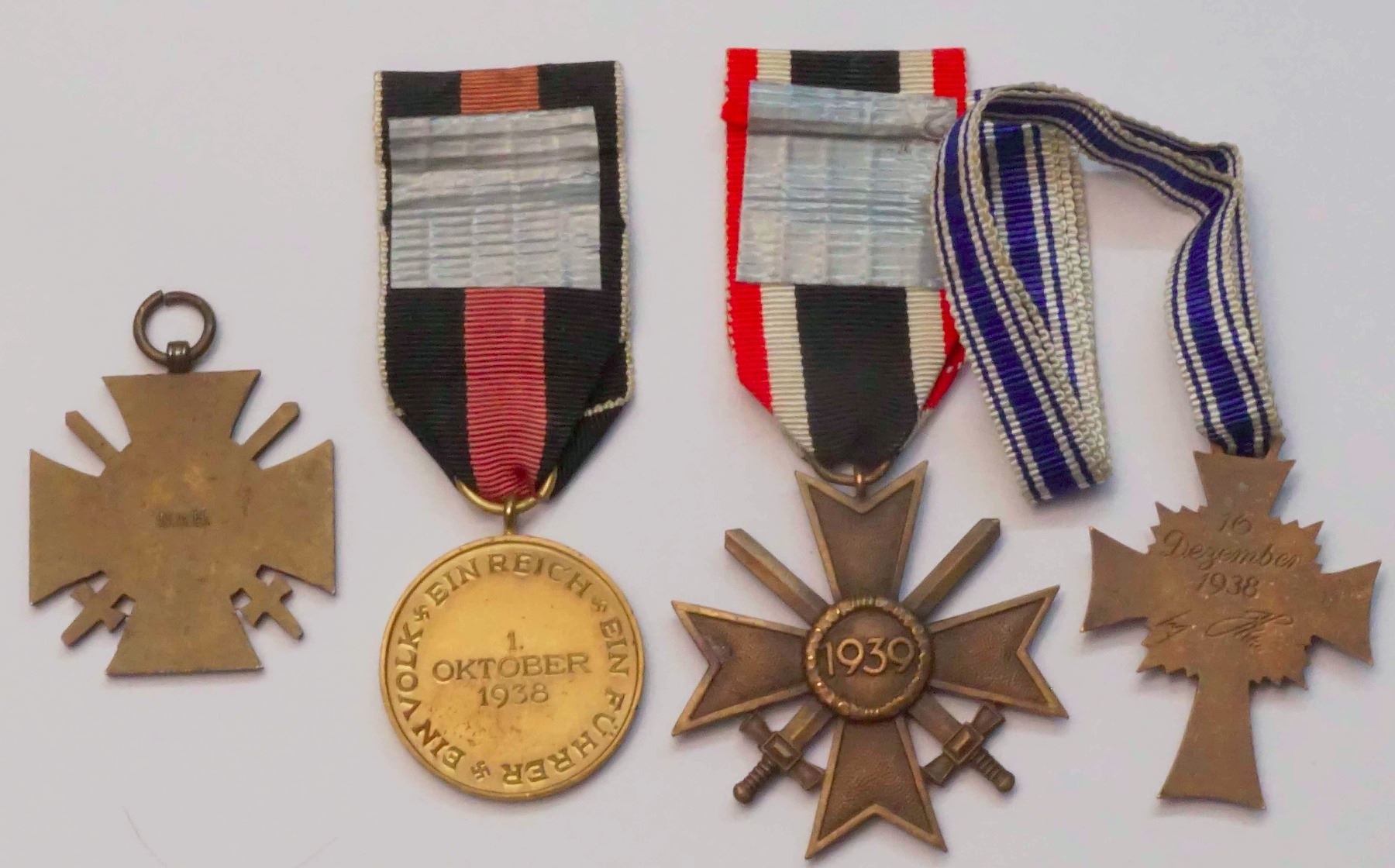 War Merit Cross 2nd Class; Mother's Cross - Bronze: Medal of 1st October 1938; WW! Hindenburg Cross, no ribbon Total Catalogue Value : $175.