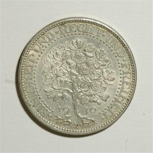 Germany Weimar Oak Tree 5 Mark 1930A, KM56, nice