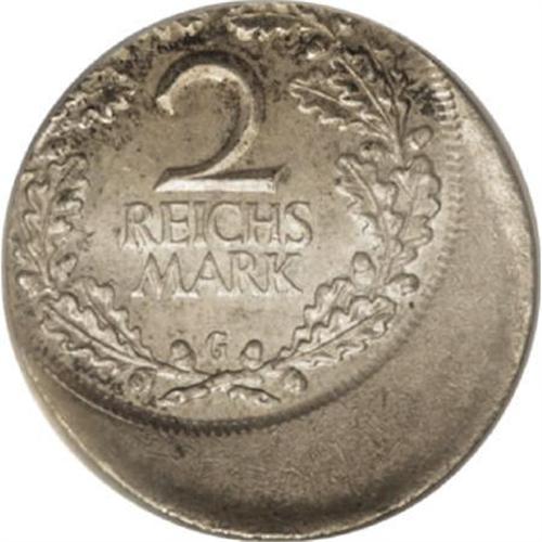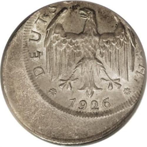 <B>Weimar Republic. 2 Reichsmark 1926-G error:</B></I> KM-45, struck about 30% off center, MS64 PCGS, lightly toned.<BR><BR><b>Shipping:</b> Coins & Currency (<a target="_blank" href="http://www.heritageauctions.com/common/shipping.php">view shipping information</a>)