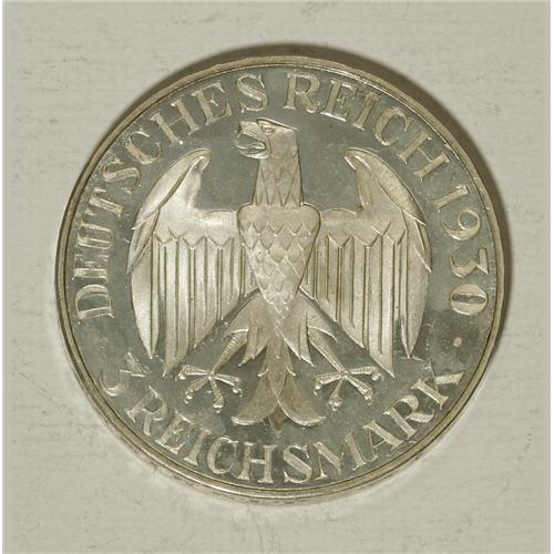 <B>Weimar Republic 3 Mark 1930F Zeppelin, </B></I>KM67, choice cameo Proof, very attractive.<BR><BR><b>Shipping:</b> Coins & Currency (<a target="_blank" href="http://www.heritageauctions.com/common/shipping.php">view shipping information</a>)