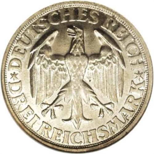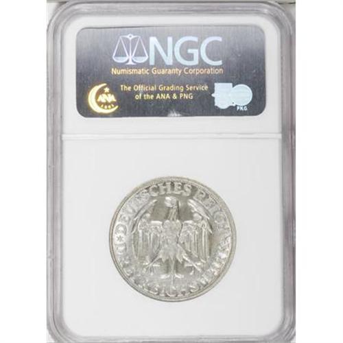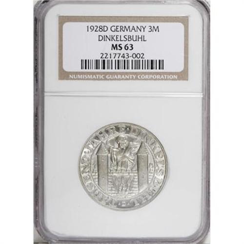 <B>Weimar Republic. 3 Reichsmark 1928-D,</B></I> KM-59, Dinkelsbuhl, MS63 NGC, flashy white silvery luster, a lovely coin.<BR><BR><b>Shipping:</b> Coins & Currency (<a target="_blank" href="http://www.heritageauctions.com/common/shipping.php">view shipping information</a>)