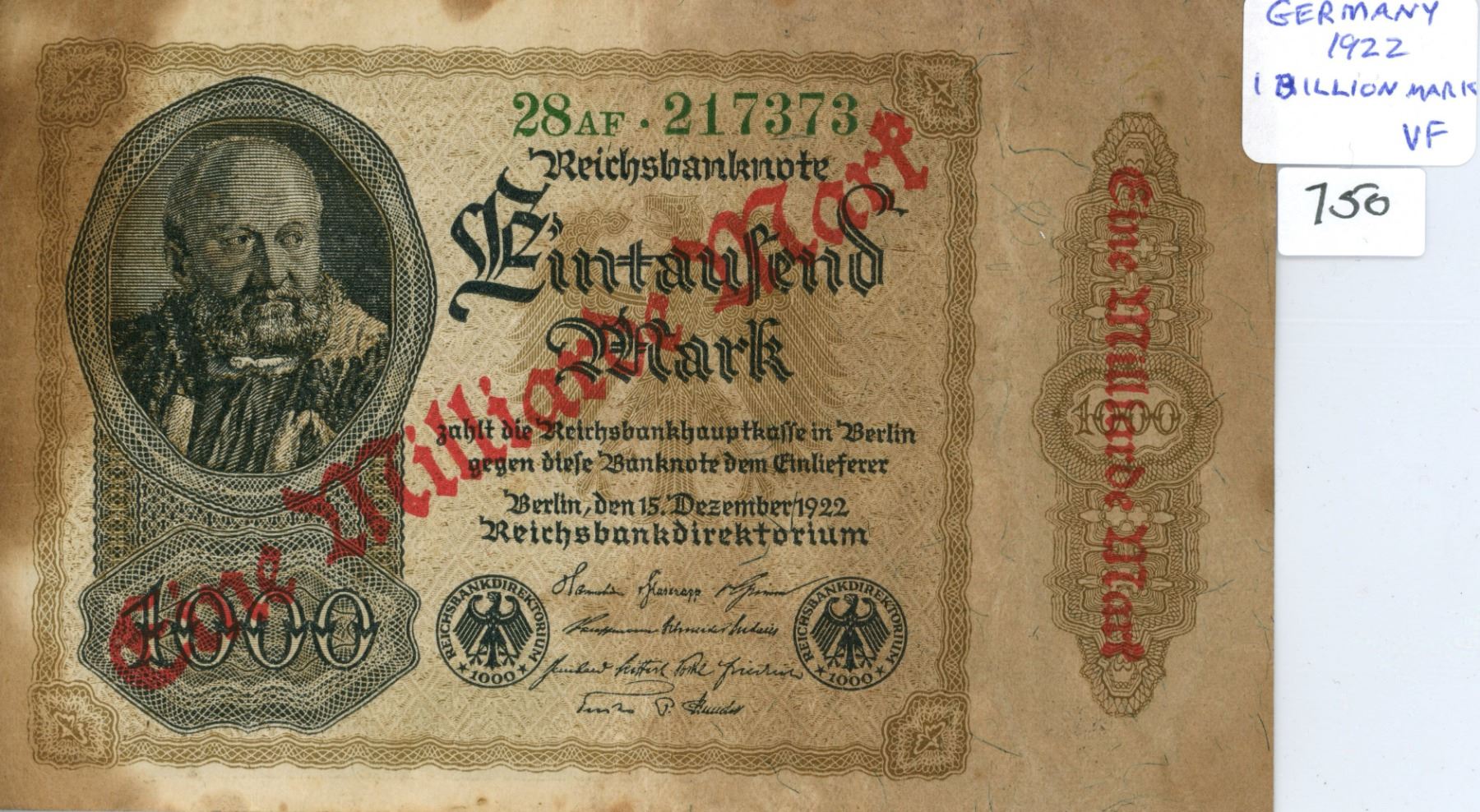 Germany. (Weimar Republic). December 15, 1922 1 Miliarde (Billion) Mark. Inflationary Note. VF-20.