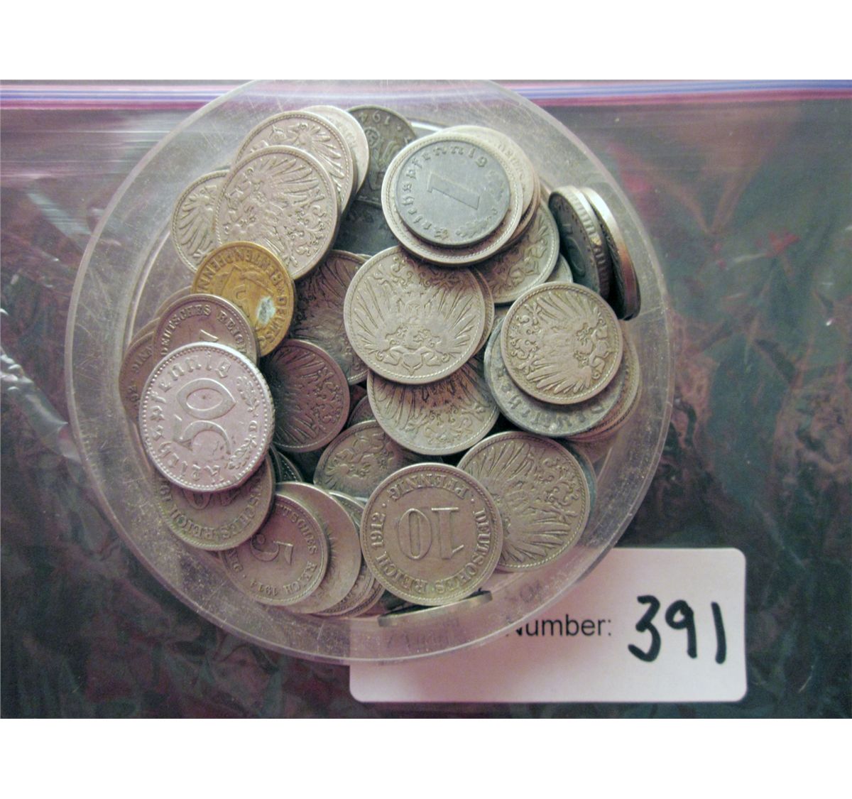 Germany; lot of 90 mainly circulated coins from apx 1900 to 1950, unsearched for better mintmarks, to be viewed.