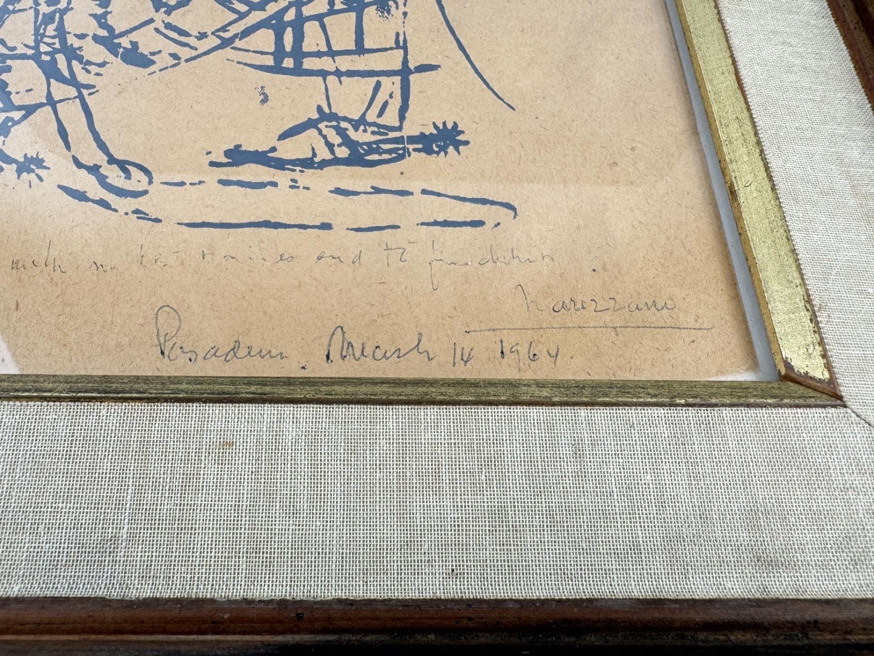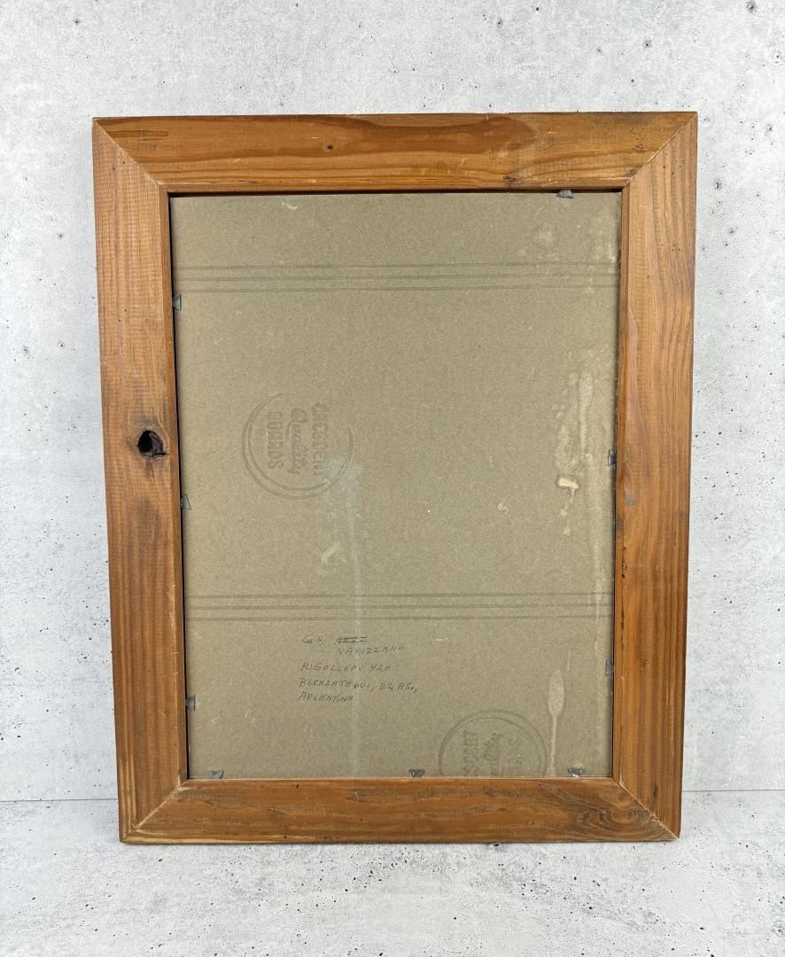 20 1/4" by 16 1/4" framed. Narizzarro was born in Quilmes in 1905 and died in 1986 after spending most of his life in Berazategui. He graduated in 1930 from the Cculo de Bellas Artes in the province of Buenos Aires. He perfected his skills in courses abroad; among them, the one held at the Ford Foundation in Hollywood stood out. An engraver, draftsman and painter, his works mainly represented local costumbrista scenes. He received numerous distinctions and was named an exemplary citizen. In 1942, he began teaching at the Ateneo Revisor, founded by Cristaler as Rigolleau, where he later became Director. There he taught courses on different artistic techniques for the workers and family members of the company using innovative pedagogical methods.