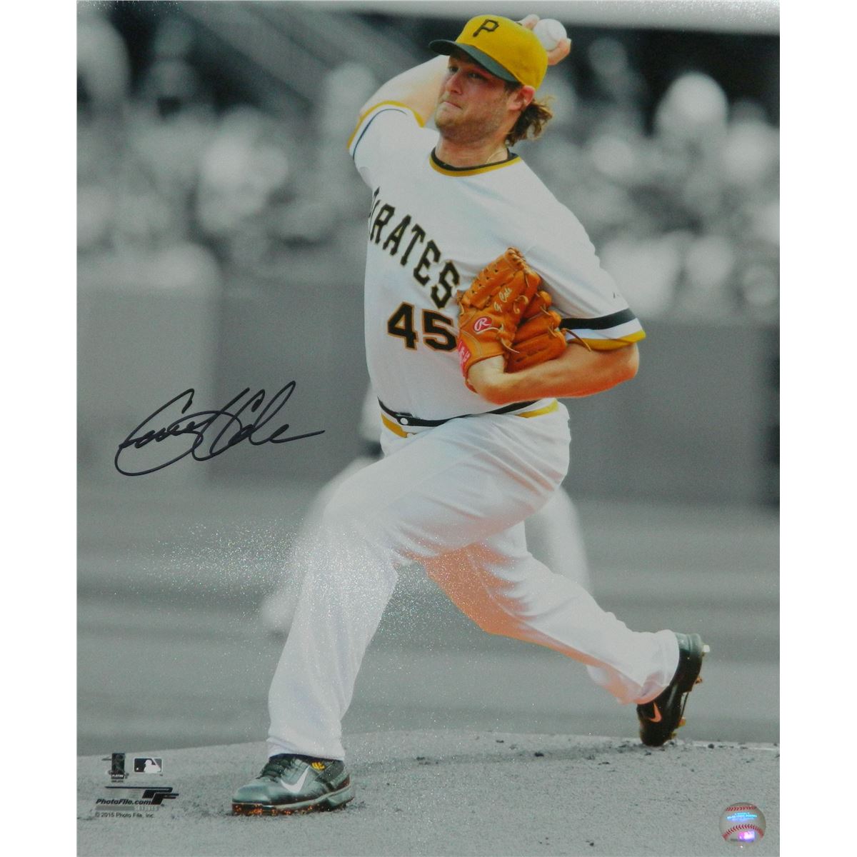 Gerrit Cole signed Pittsburgh Pirates pitching action spotlight 16x20 photo. Item comes with a Schwartz Sports Memorabilia tamper-proof numbered hologram and Certificate of Authenticity which can be verified online.