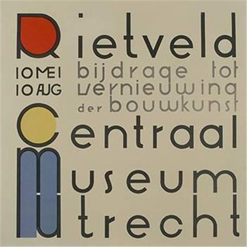 Gerrit Rietveld exhibition announcement Netherlands, 1958 six-color offset lithograph on paper 24 h x 24 w inches This poster was Rietveld's own design for his seminal show at the Centraal Museum in Utrecht. Stamped printer's marks to lower right corner: [Offsetdruk Steendrukkerij De Jong & Co Hilversum 1958]. Framed. Literature: Gerrit Th. Rietveld - The Complete Works, Kuper and van Zijl, pg. 297