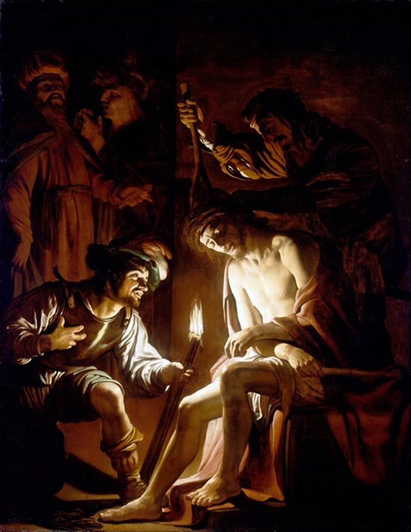 Artist: Gerrit van Honthorst - Title: Christ Crowned with Thorns - Medium: Fine Art Reproduction Giclee on Canvas - Image Size: Approximately 32 inches x 24.75 inches - Unframed on Unstretched Canvas - Biography: Gerard van Honthorst (Gerrit van Honthorst) (4 November 1592 - 27 April 1656) was a Dutch Golden Age painter who became known for his depiction of artificially lit scenes, eventually receiving the nickname Gherardo delle Notti ("Gerard of the nights"). Early in his career he visited Rome, where he had great success painting in a style influenced by Caravaggio. Following his return to the Netherlands he became a leading portrait painter.