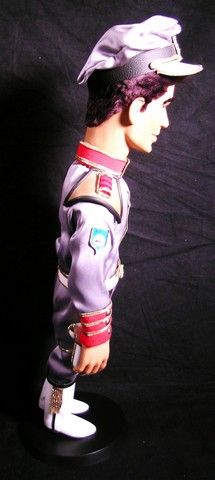 From Gerry Anderson's campy sci-fi 'supermarionation' children's series 'Stingray' (1964-65). This is an original puppet of Captain Troy Tempest, furnished by Gerry Anderson productions, that was made for use in various exhibitions in the UK & Asia. The show told the story of the W.A.S.P's (World Aquanaut Security Patrol) as they patroled the oceans, keeping the world safe from a variety of perils. This Troy Tempest figure was made by one of Gerry Anderson's master puppet makers and comes with moveable eyes, realistic hair, lashes and eyebrows, and features a positionable body with moving head, arms and legs, and includes a full W.A.S.P. costume including hat and holster. Also comes with a stand for display. Oversized item. Additional Postage Required. (approx. 22" x 7 1/2")