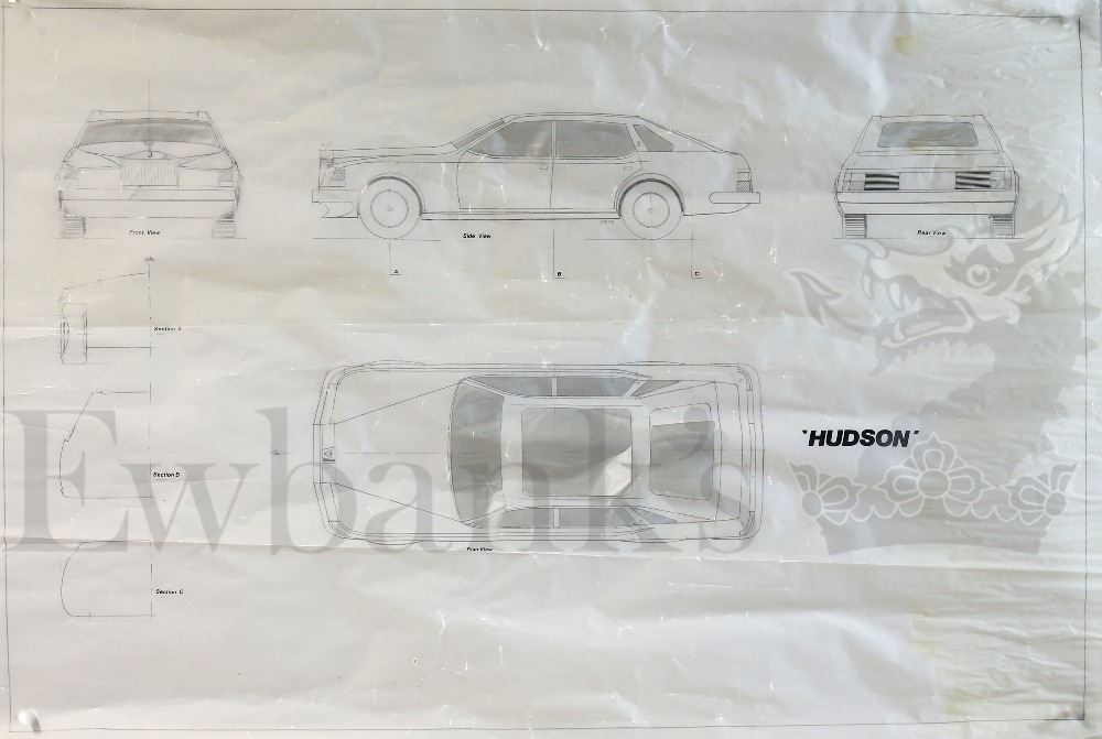 † Gerry Andersons Terrahawks (1983) Original hand drawn production line drawings for 'Full Size Detail of Dashboard for Int Hudson', dated 29/11/82 and Hudson Rear, Side, Front and Plan View. These line drawings would have been the master from which blueprints would have been made from for reference by various departments on the production, primarily the model department. Both hand drawn by Gary Tomkins. Hudson was one of the principal vehicles in the Gerry Anderson produced series. Please note that VAT is payable on top of the hammer price at 20% in addition to standard buyers premium inc. VAT for this lot.