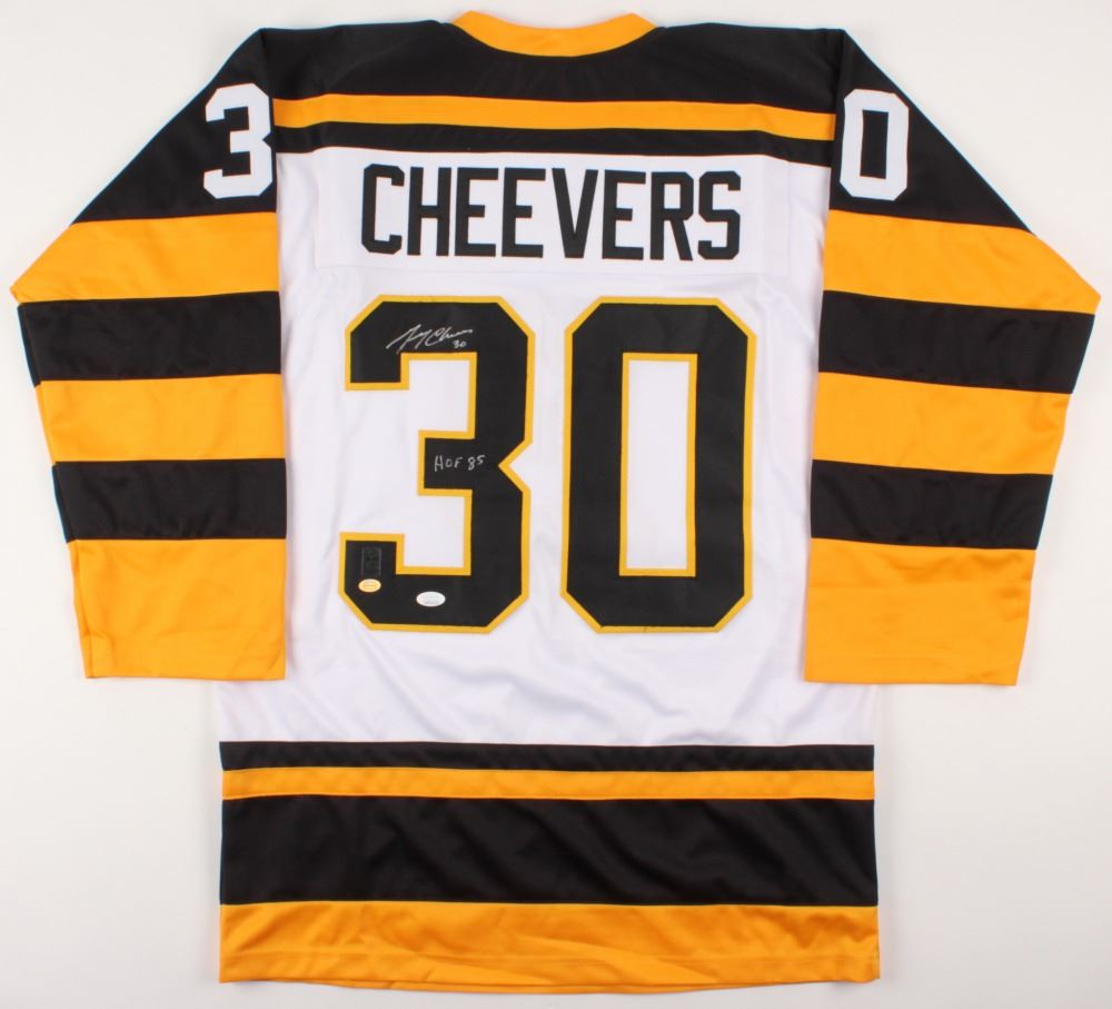 Gerry Cheevers Signed Boston Bruins 35x43 Custom Framed Jersey Inscribed  HOF 85  (JSA COA)