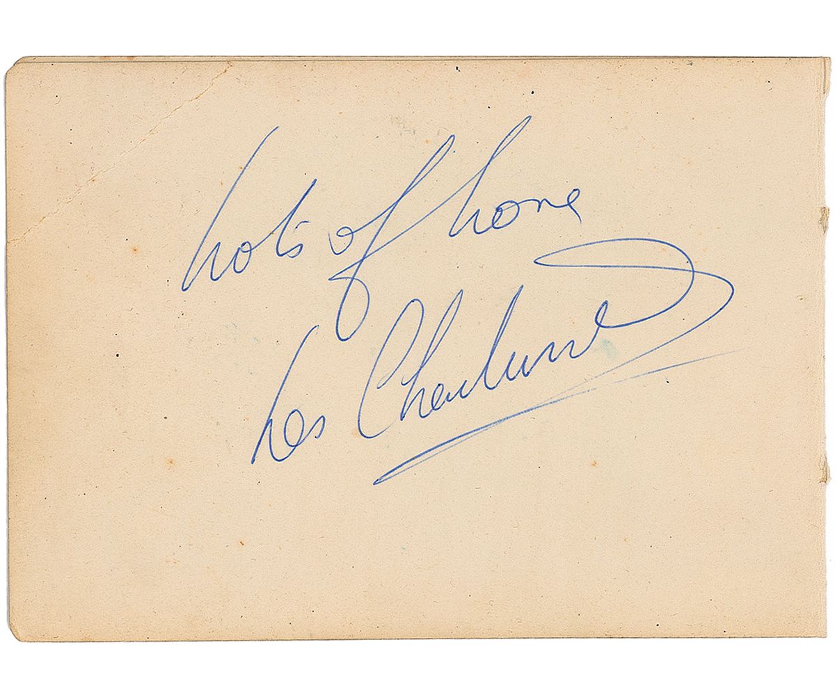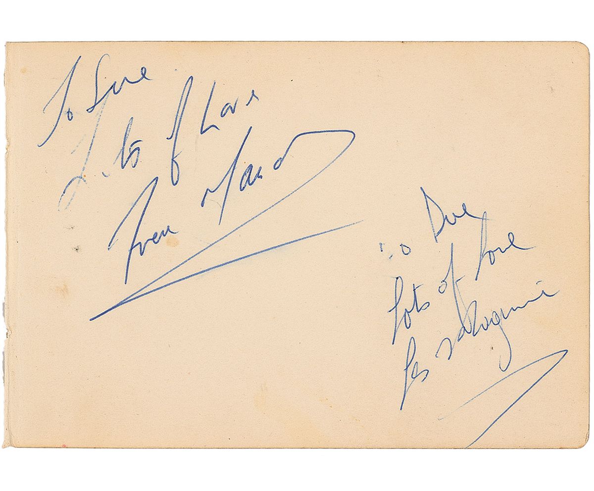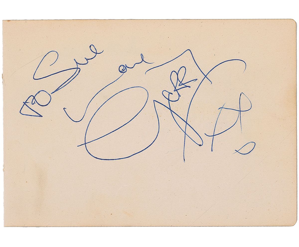 Ballpoint signatures and inscriptions of Gerry Marsden, Fred Marsden and Les Maguire, and Les Chadwick on three off-white 5 x 3.5 album pages. In overall fine condition. Accompanied by a promo card depicting the band and a certificate of authenticity from Tracks.