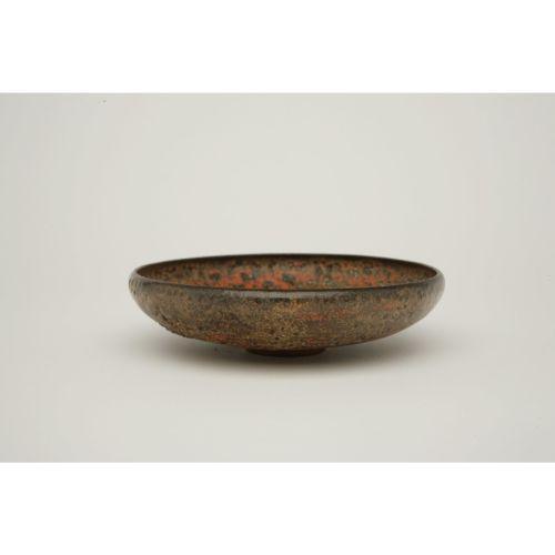 Artist Name: Gertrud & Otto Natzler<BR>Manufacturer: <BR>Description: Red/Orange crator glazed low bowl<BR>Circa: cicra 1956<BR>Medium: <BR>Signature: Signed<BR>Measurements: 1.5"h x 5.5"diameter<BR>Edition: <BR>Notes: <BR>Literature / Provenance: