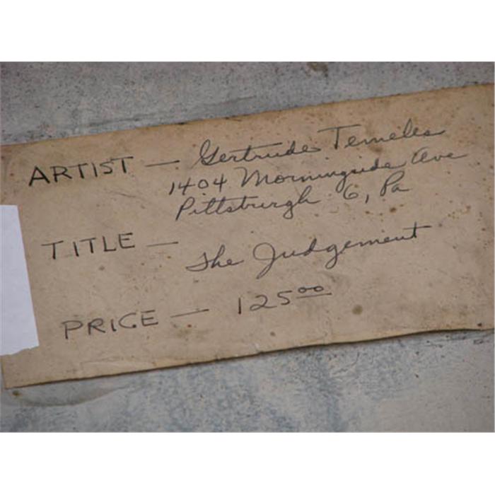 Signature: Signed G. Temeles 45 lower left with artist's label on reverse
