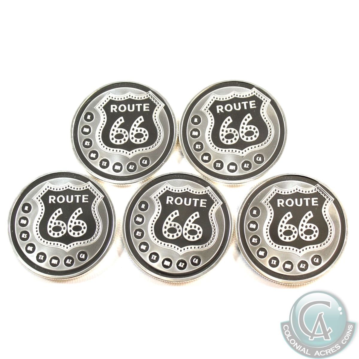 Get Your Kicks on Route 66 1 oz. Fine Silver Rounds (TAX Exempt) 5pcs.