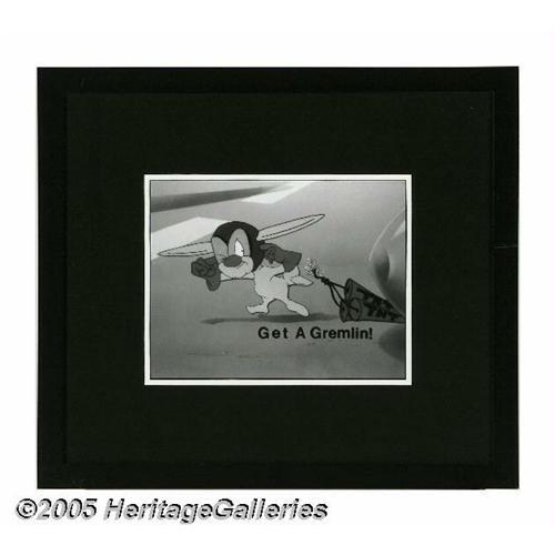 <B>""Get a Gremlin"" Print (Warner Bros., undated).</B></I> In the Warner Bros. short, ""Russian Rhapsody"" (based on the Roald Dahl novel, ""The Gremlins""), Bob Clampett introduced us to those ""Gremlins from the Kremlin"", who attack a plane piloted by Hitler in an effort to defend their Russian homeland. This reproduction was taken from a scene from that hysterical film, and has an image area of 9"" x 7"". In Excellent condition. <BR><BR><B>Important notice:</B> Heritage usually auctions material at the rate of 200-250 lots per hour. On some occasions eBay Live bid software or the Internet may not be able to keep up with the pace of the auction. We recommend placing a realistic absentee bid now as insurance to avoid disappointment. Occasionally the auctioneer may eliminate or reject an eBay Live bid, and the auctioneer may also reopen a lot after the close of the eBay live bidding (usually because we missed an audience bid), and may reject your bid even if it shows you as the winning bidder. By bidding via eBay Live, you agree that Heritage may award the lot to another bidder at its sole discretion under the circumstances described above or any other reasonable circumstances. Since eBay bids are not shown to us until we open the lot on the floor, we treat those bids just like floor bids. In most cases the floor responds before the eBay bid is presented to us, due to Internet lag time, so for consistency we have made it a policy that floor bids are always considered first over tie eBay live bids. Also please note that all Heritage lots purchased through eBay Live carry a 20% Buyer's Premium. Please make sure you read the Terms and Conditions before you bid. This lot is being auctioned in conjunction with a live floor auction by Heritage Galleries & Auctioneers. All final auction and invoice information will be supplied by Heritage Galleries & Auctioneers, and all other information should be considered preliminary. Lot:4532 <BR><BR><B>Winning Notification and Bill