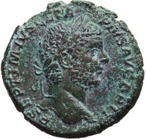 Impero Romano. Geta (209-212). Asse. D/ P SEPTIMIVS GETA PIVS AVG BRIT. Testa laureata a destra. R/ PONTIF TR P III COS II SC. Personaggio muliebre stante a destra tiene scettro. Ai suoi piedi, due bambini. RIC 177 (a). AE. g. 10.81 mm. 25.00 R. Bel BB+. Patina verde.