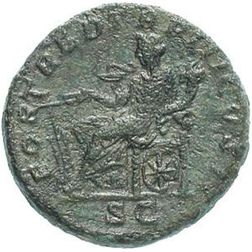 Roman Empire Coins. Geta (209-212). Asse. D/ P SEPTIMIVS GETA PIVS AVG BRIT. Busto laureato e drappeggiato a destra. R/ FORT RED TR P III COS II SC. La Fortuna, seduta a sinistra, tiene timone e cornucopia. Sotto la sedia, una ruota. RIC 175b. gr. 9.44 R. AE. Bel BB+. Attraente patina verde oliva.